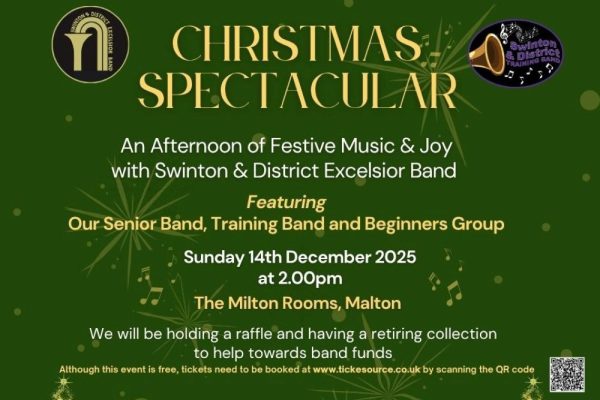 An afternoon of festive music with the Swinton & District Excelsior Band featuring the senior band, training band and beginners’...